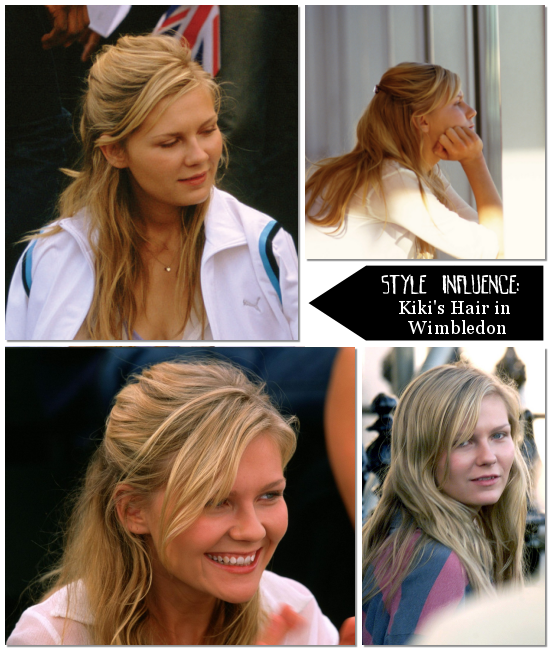 I think that the intense hair envy really got started when I saw her in Wimbledon. Her hair in that movie is so naturally textured, which is exactly what I wish my hair was. Her character puts it up simply to get it out of her face because she is an athlete, so it’s carefree in that her do’s are about function, not really how it looks. Her character is an american tennis player, and you would think that she were going to become a version of Anna Kournikova, because of the blond hair and tennis skirts, but because her hair texture is allowed to be a bit roughed up, wavy, loose, her character can’t be confined to the typical blond athlete that our media knows so well. Instead her hair adds to the carefree and adventurous aura of her character’s personality.