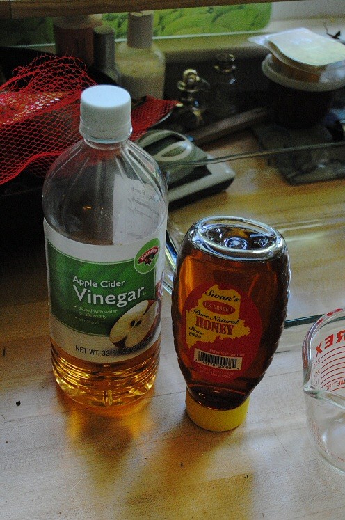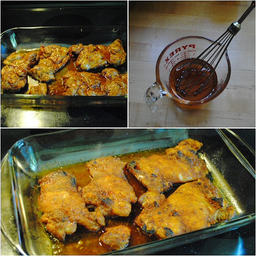 While the chicken is cooking mix the honey and vinegar together. When you’ve cooked the chicken for 20 minutes total pull the pan out of the oven and smother the chicken with the honey mixture. Put it back in for 3 minutes, flip and cook another 3 minutes.